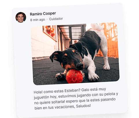Recibí información actualizada sobre cómo la está pasando tu perro, que está haciendo y cómo pasa la estadía. ¡Sabemos que es como un hijo!